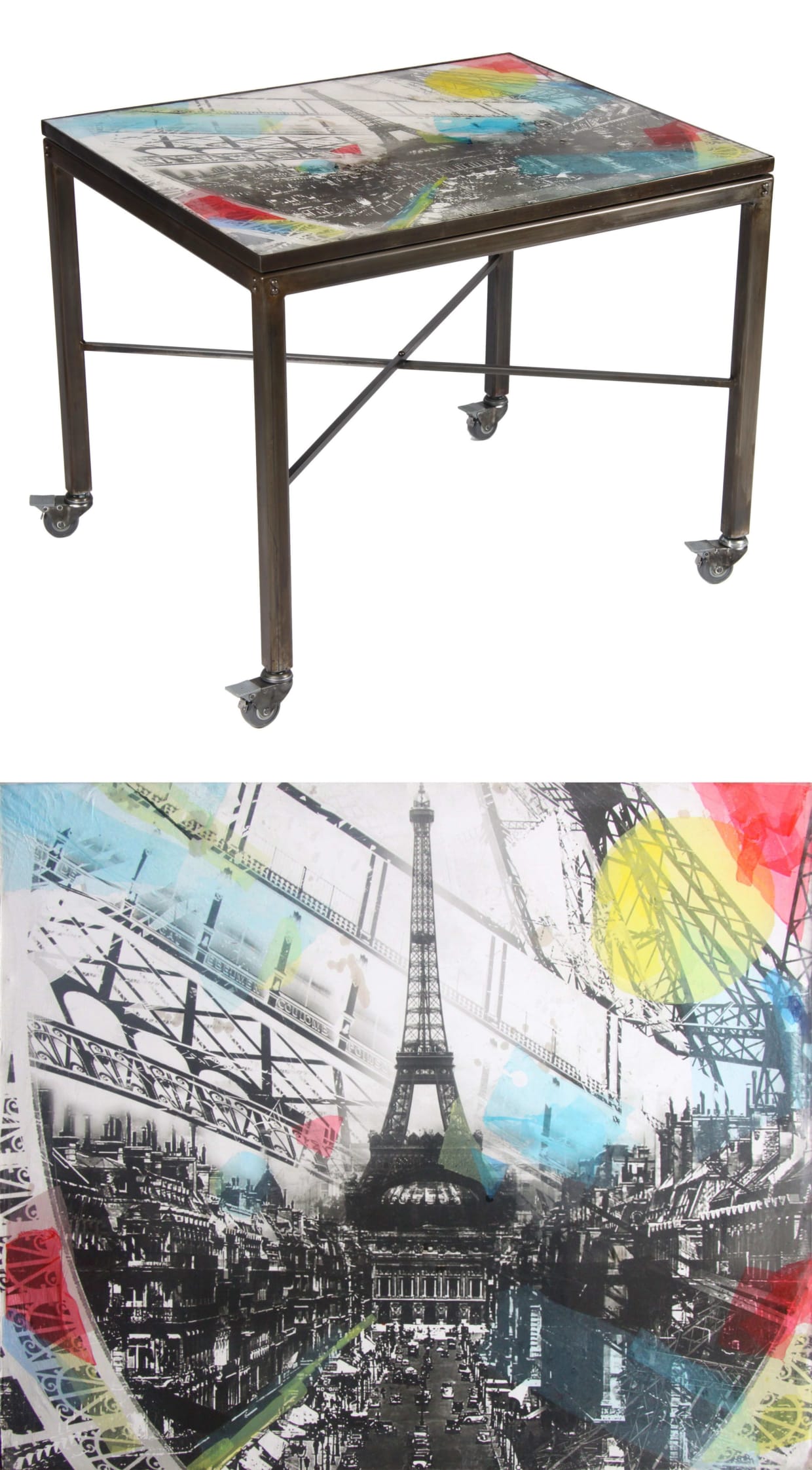 Commissioned to design, fabricate and install three mixed-media tabletops on antique metal table legs. Inspired by European travel and encapsulated in a low VOC epoxy resin, the designs were a collaborative effort by AFH’s Graphic Design and 3D Design Studios.