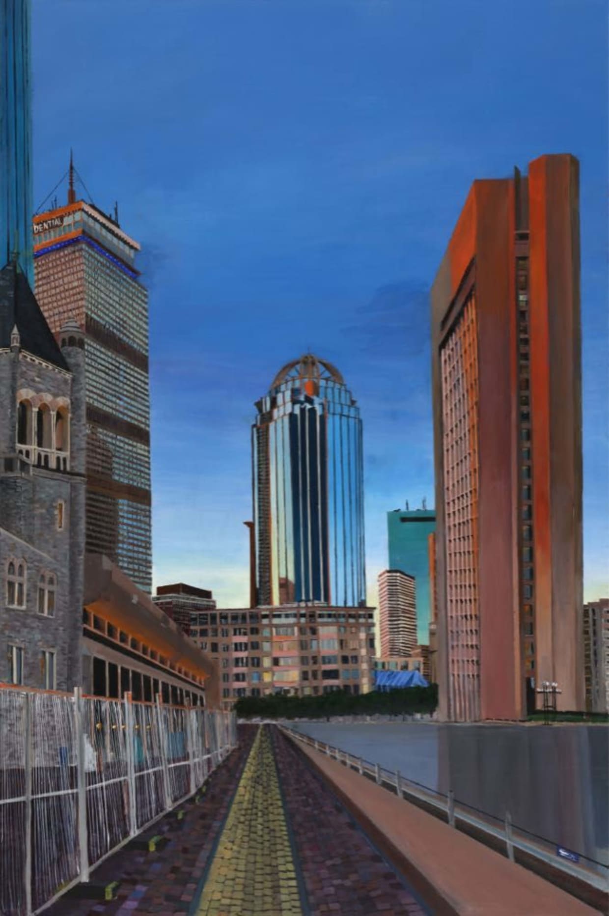 This mural was commissioned by TA Realty for the lobby of their property at 131 Dartmouth St. located in Back Bay. The printed image, approximately 60'w x 10'h commencing 12' off the lobby floor, was recreated from the fine art painting titled "Eastgate" by AFH teen artist Brennan Commisso.